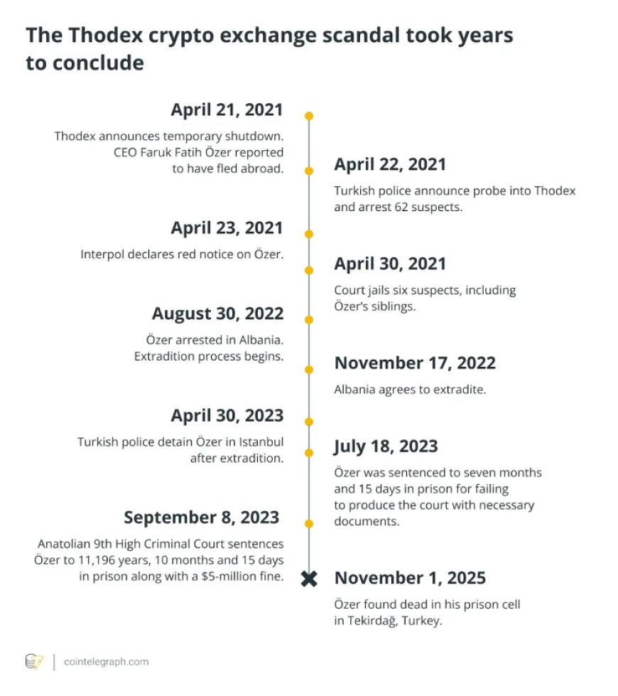 Özer, cựu giám đốc điều hành 27 tuổi của sàn Thodex, được phát hiện tử vong ngày 1/11 khi đang thụ án hơn 11.000 năm tù vì dàn dựng vụ exit scam trị giá 2 tỷ USD, gây thiệt hại cho gần 400.000 nhà đầu tư.