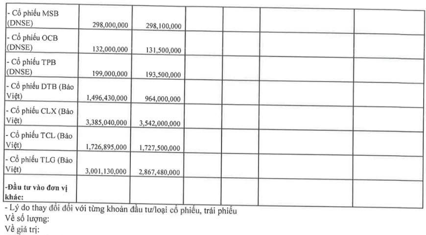 Trong khi đó, theo báo cáo tài chính, HVA Group cũng đang đầu tư hơn 10 tỷ đồng vào chứng khoán. Một số cổ phiếu chiếm tỷ trọng lớn nhất trong danh mục phải kể tới: TLG (chiếm tỷ trọng 29% toàn danh mục), CLX (chiếm tỷ trọng 33% toàn danh mục….